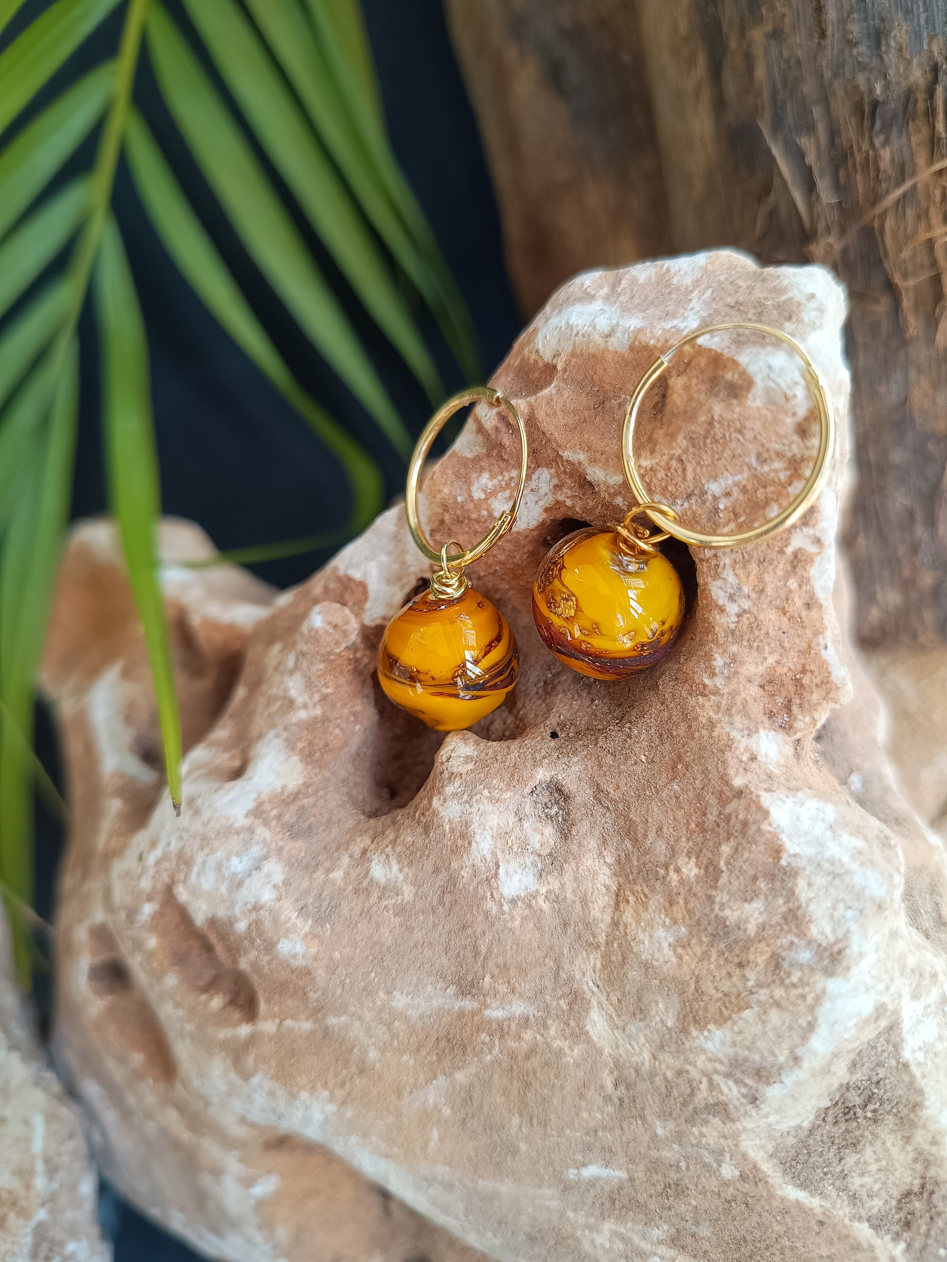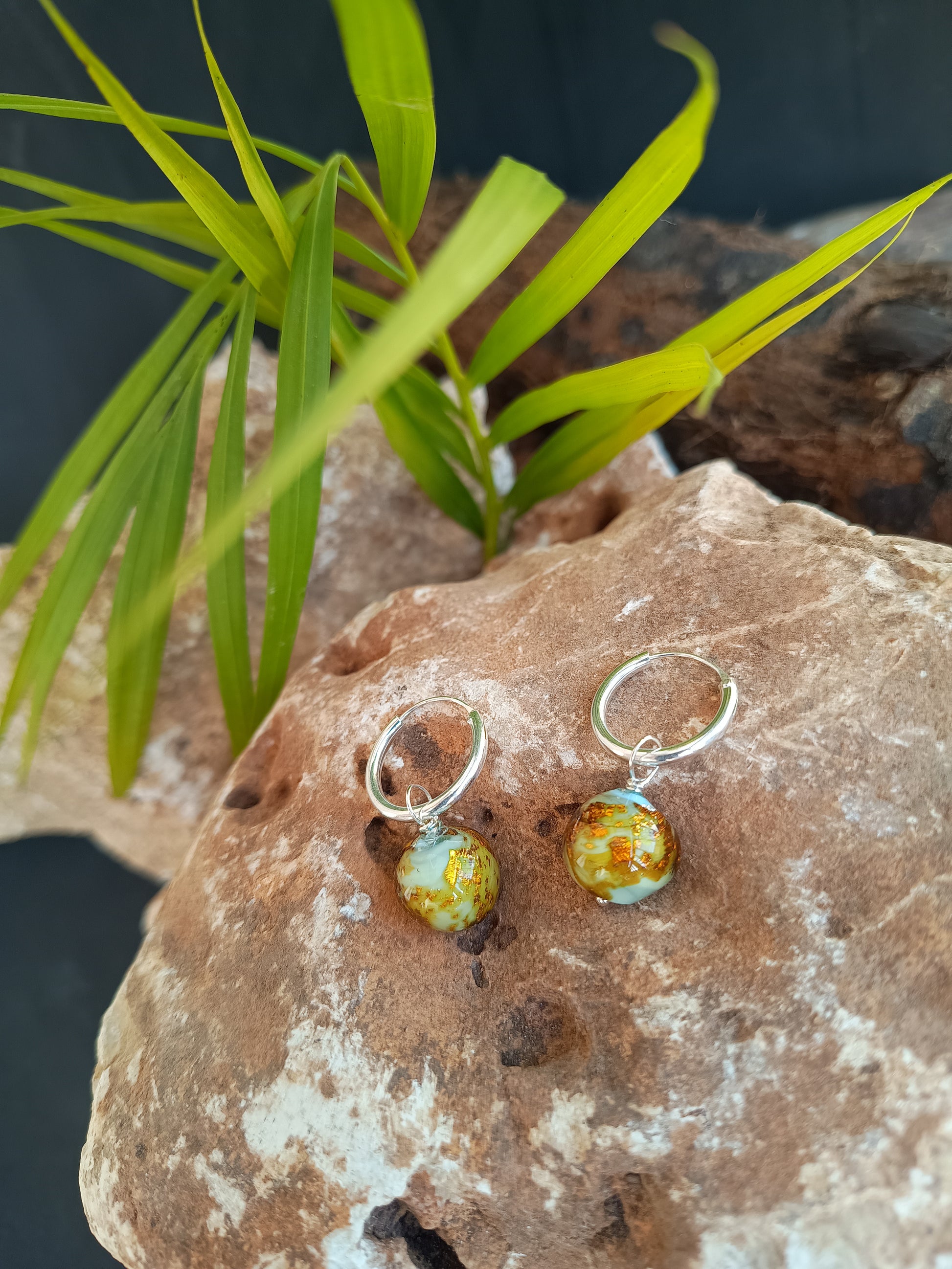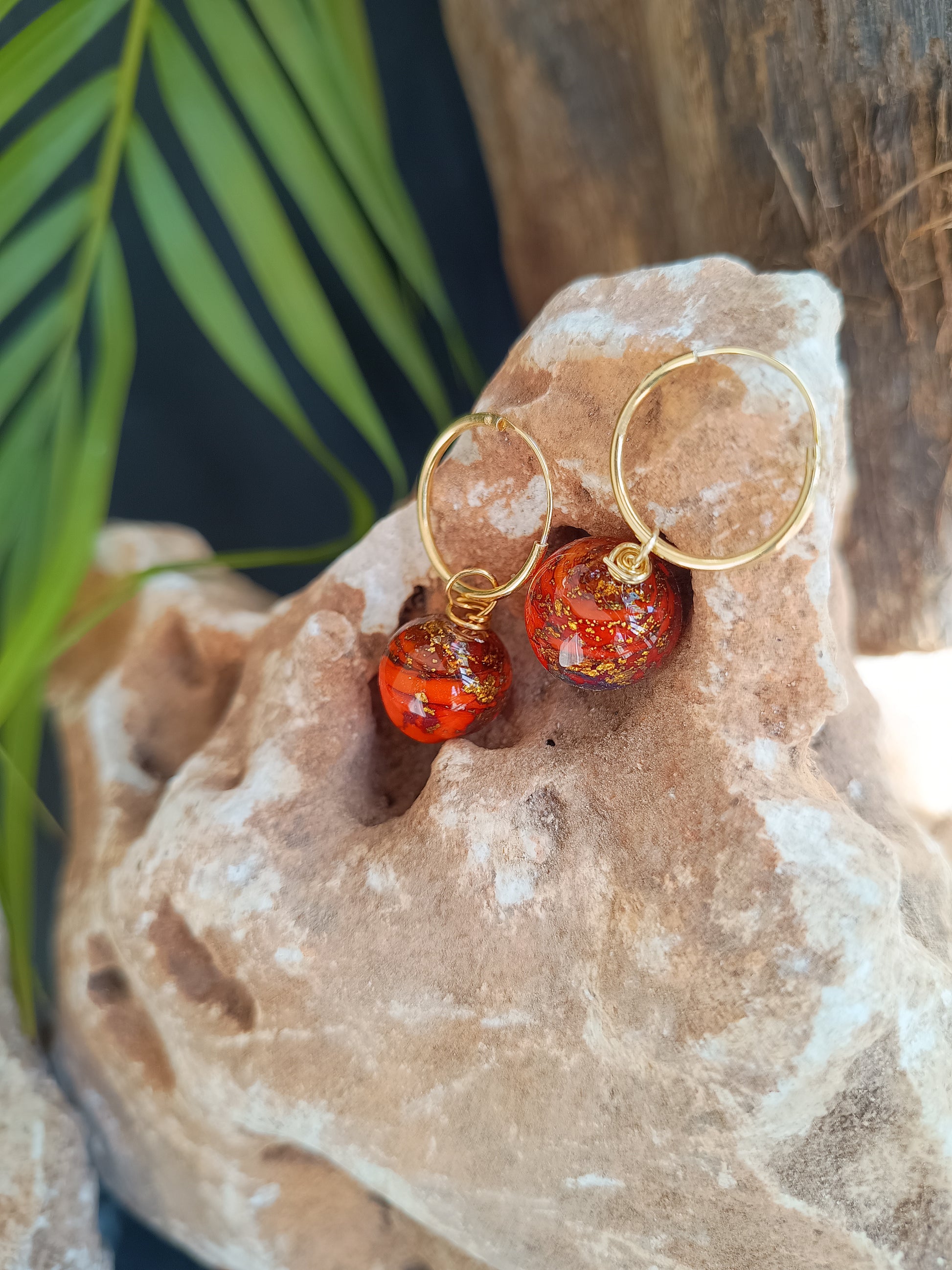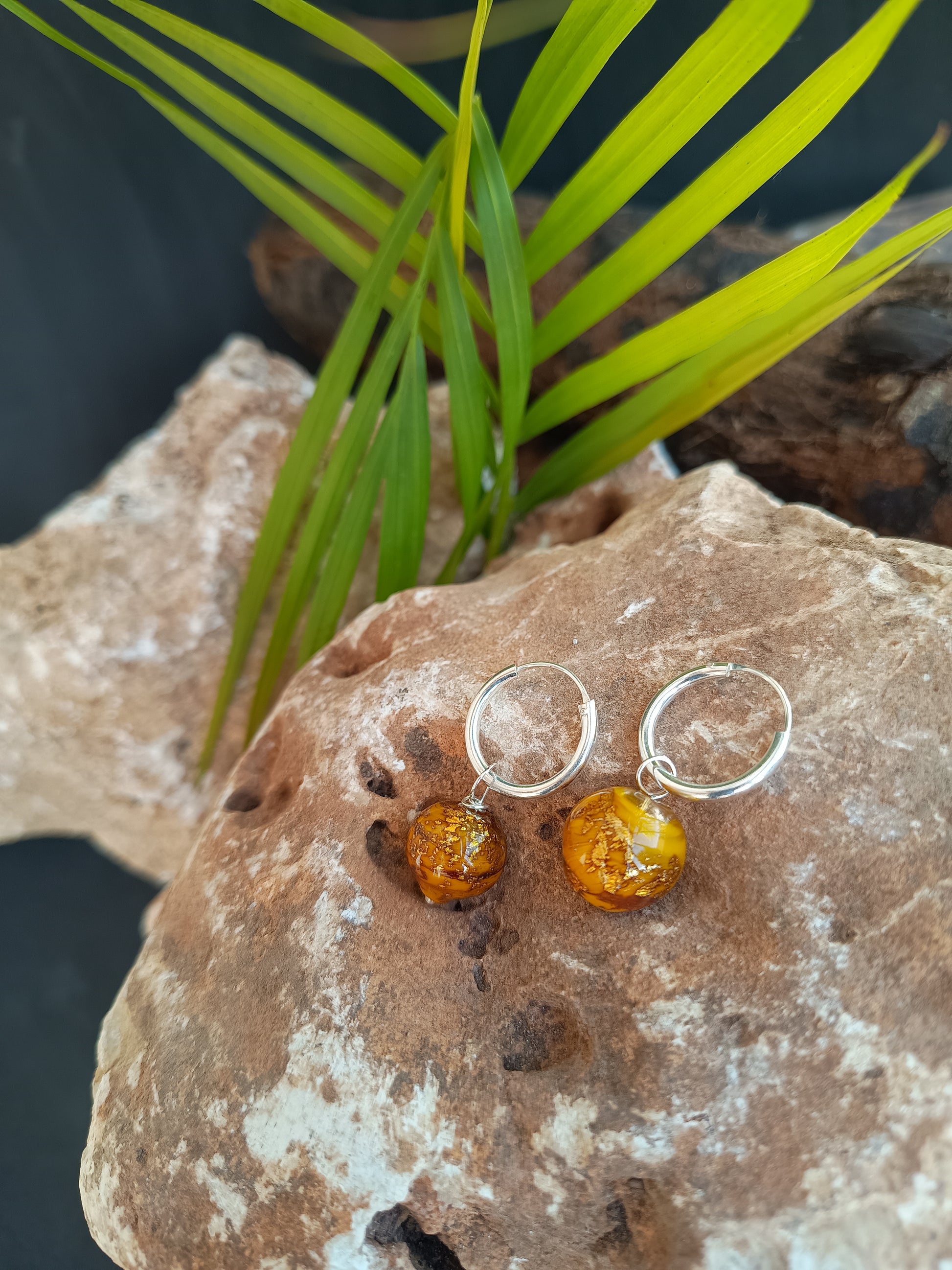 La perla planets è in vetro soffiato con scaglie in oro 24kt. La perla è realizzata con la lavorazione “vetro sommerso” questa particolare tecnica di lavorazione permette di conservare, inalterate nel tempo, le scaglie d’oro 24kt mantenendole per sempre rinchiuse nella perla.