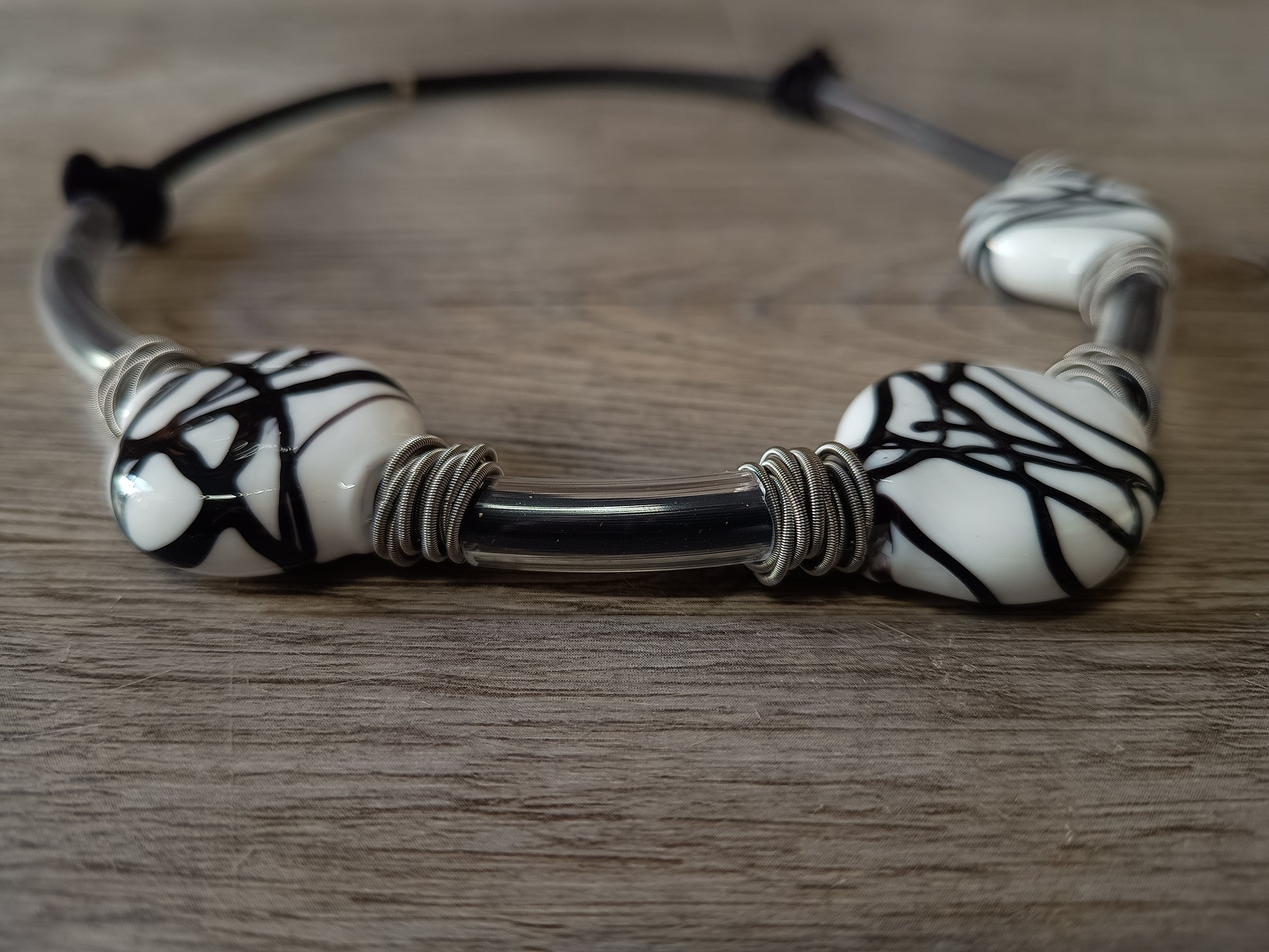 Zoe collana, la scelta elegante e moderna per ogni occasione. Indossa la leggerezza e l'eleganza della collana con perle di vetro soffiato dalle striature nere. Aggiungi un tocco contemporaneo ai tuoi outfit con la nuova collezione Zoe. Le misure delle perle in vetro soffiato sono leggermente variabili, le striature delle perle non saranno mai uguali l'una all'altra, le perle sono soffiate una ad una per questo ogni perla è unica.