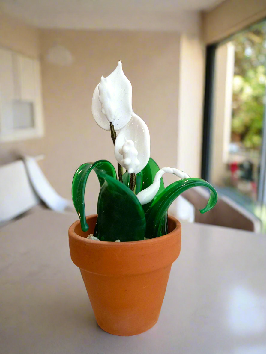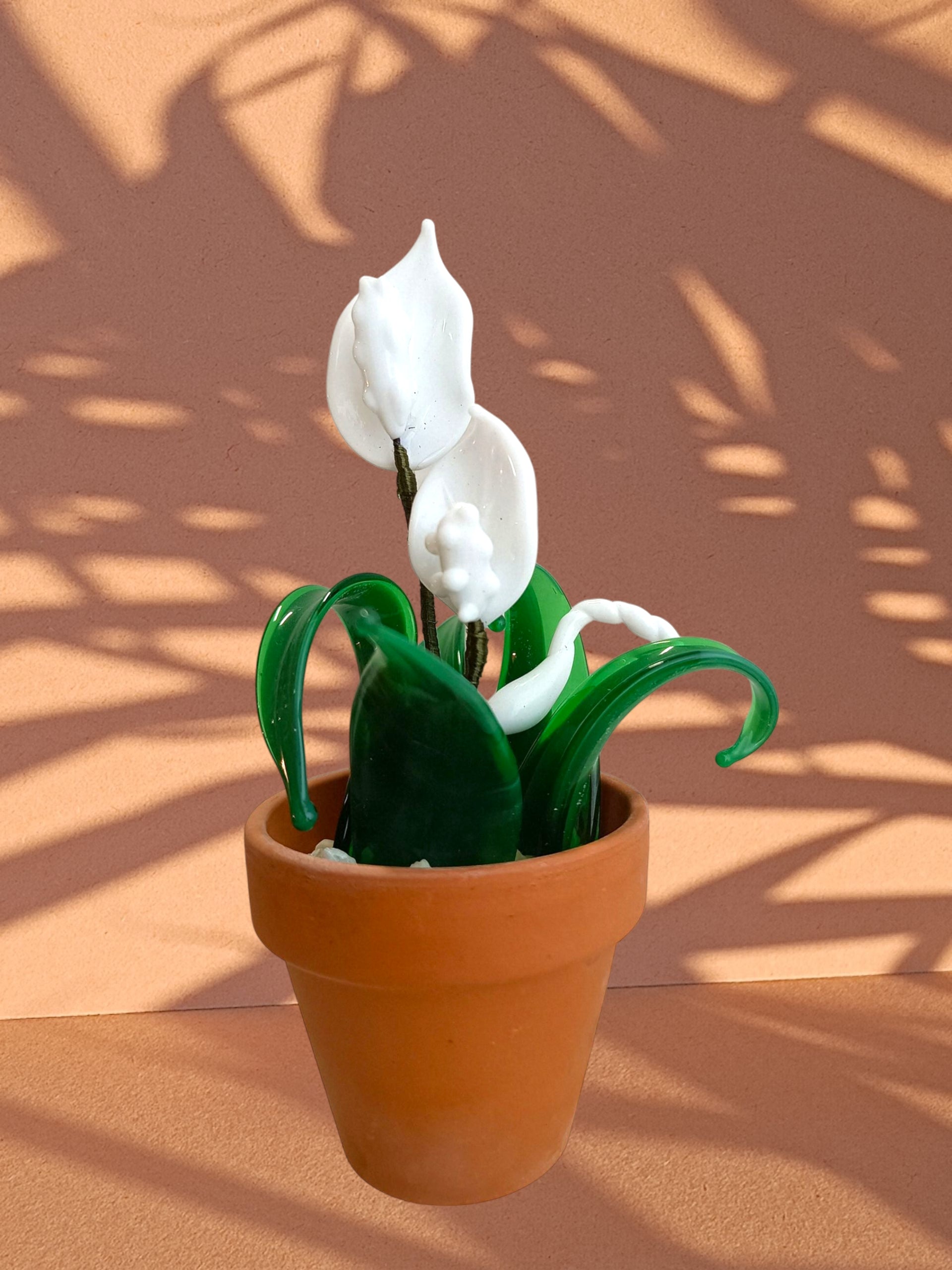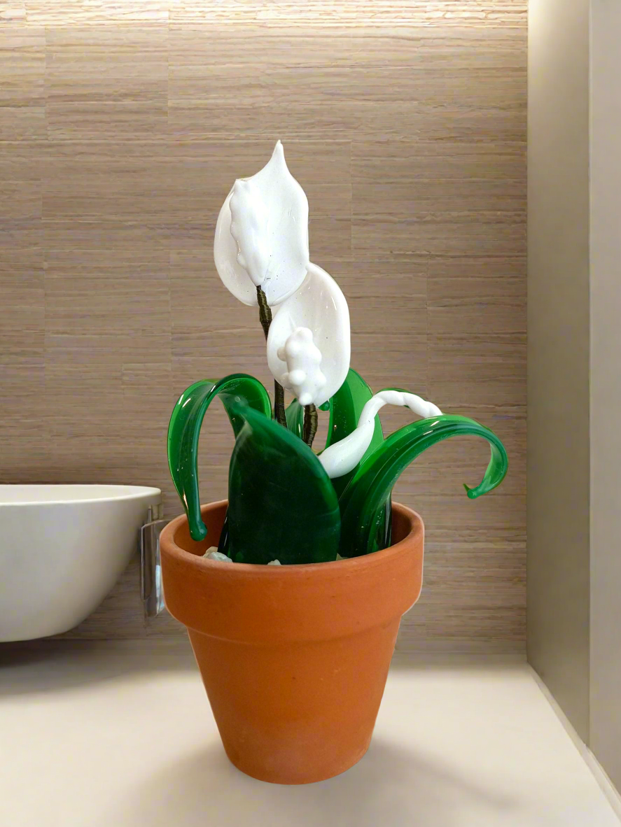 Porta la bellezza e la vitalità della natura nella tua casa con il nostro spatifillo artigianale in vetro di Murano. La pianta rappresenta la prosperità e la purificazione, mentre il filo di seta aggiunge un tocco di eleganza. Ideale per creare un'atmosfera accogliente e armoniosa.
