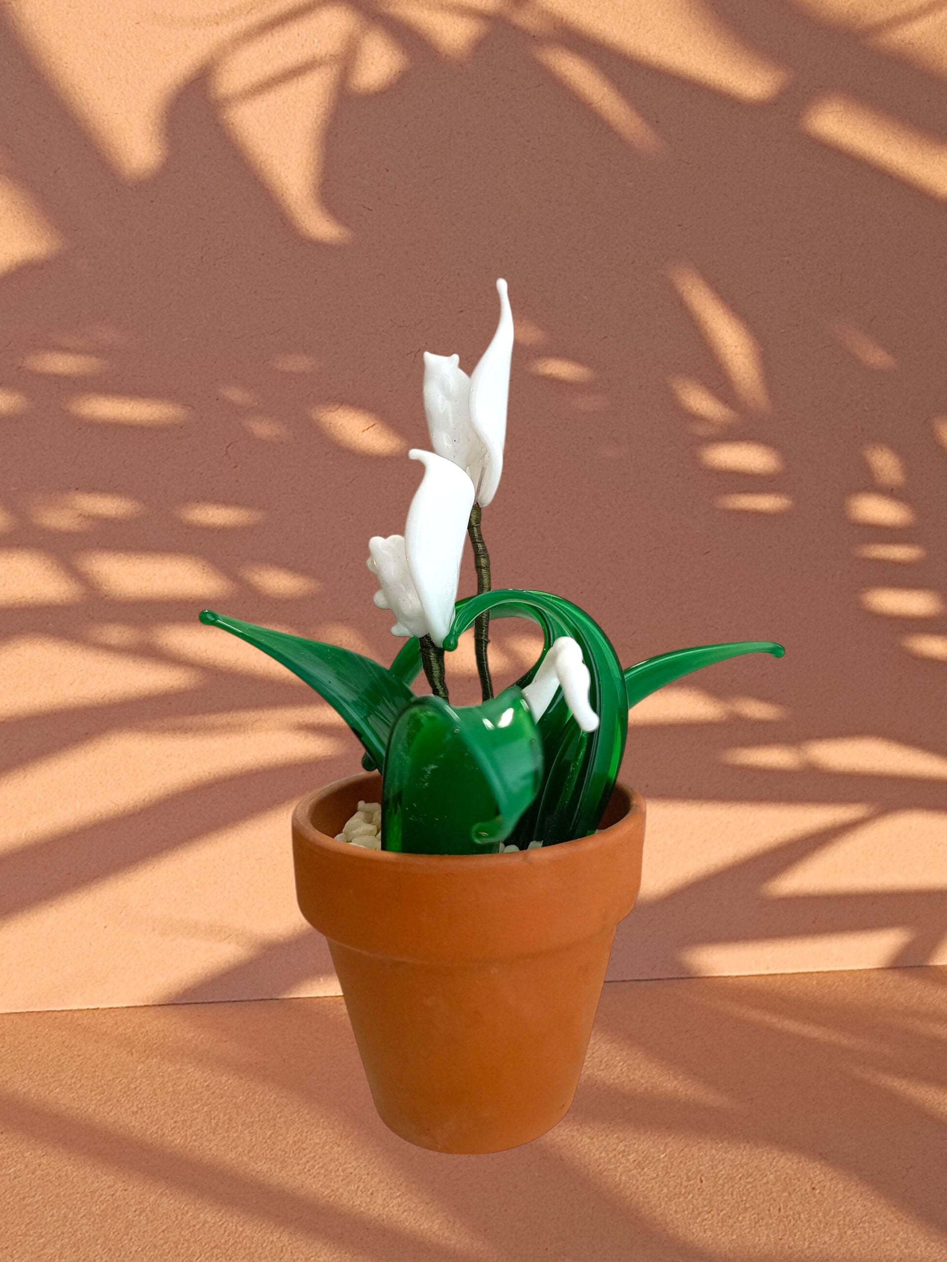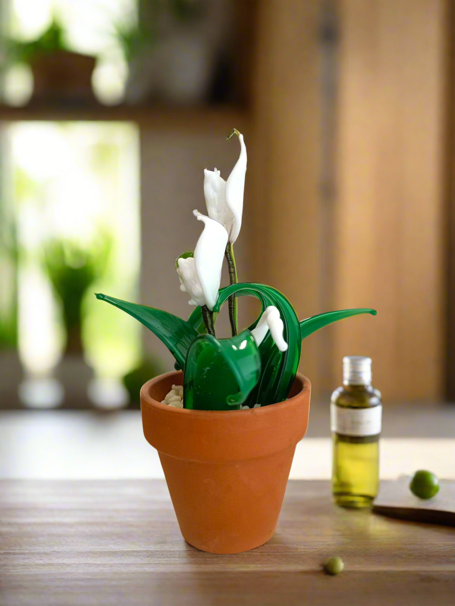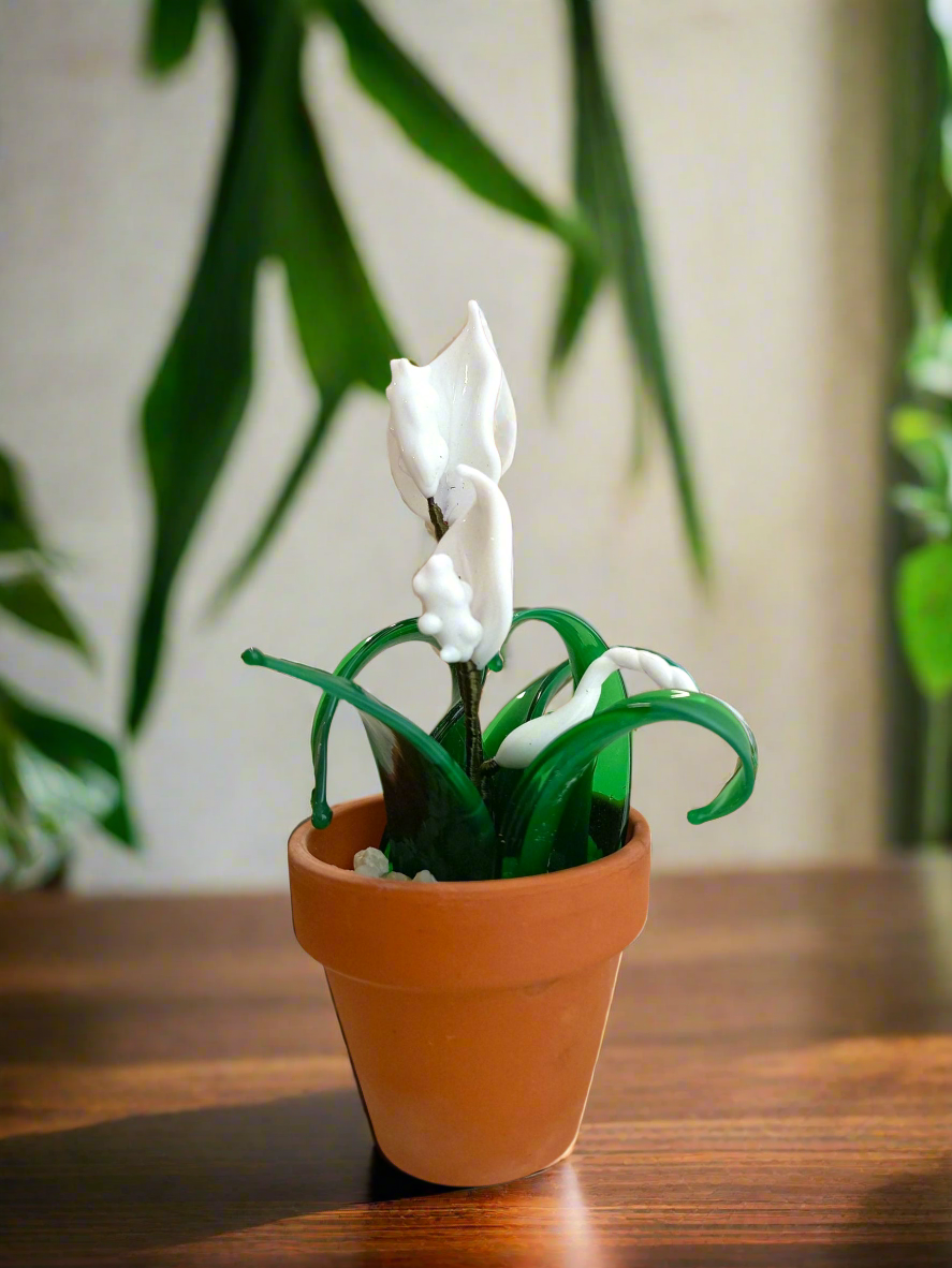 Porta la bellezza e la vitalità della natura nella tua casa con il nostro spatifillo artigianale in vetro di Murano. La pianta rappresenta la prosperità e la purificazione, mentre il filo di seta aggiunge un tocco di eleganza. Ideale per creare un'atmosfera accogliente e armoniosa.
